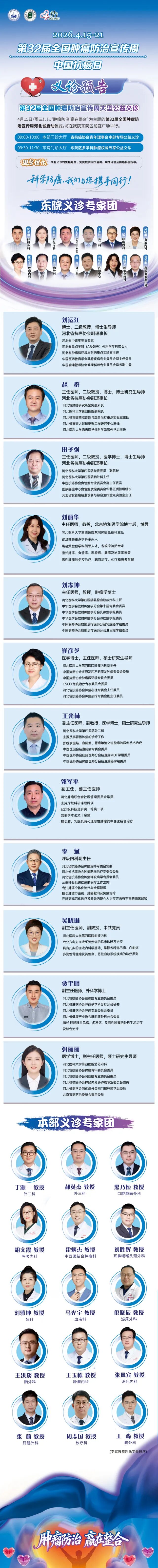 【义诊预告】本周三!第32届全国肿瘤防治宣传周大型公益义诊相约河北医科大学第四医院